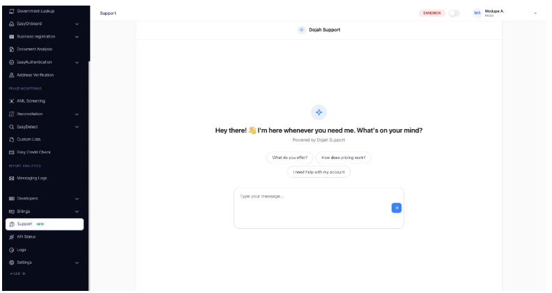 1. AML Screening Enhancements Dojah introduces its enhanced AML screening solution, which has evolved from simple watchlist checks to a complete AML case management system, designed to support your entire compliance workflow in one platform. We made key improvements to our Anti-Money Laundering (AML) screening process. What’s new:- Enhanced logic for capturing and evaluating compliance data.